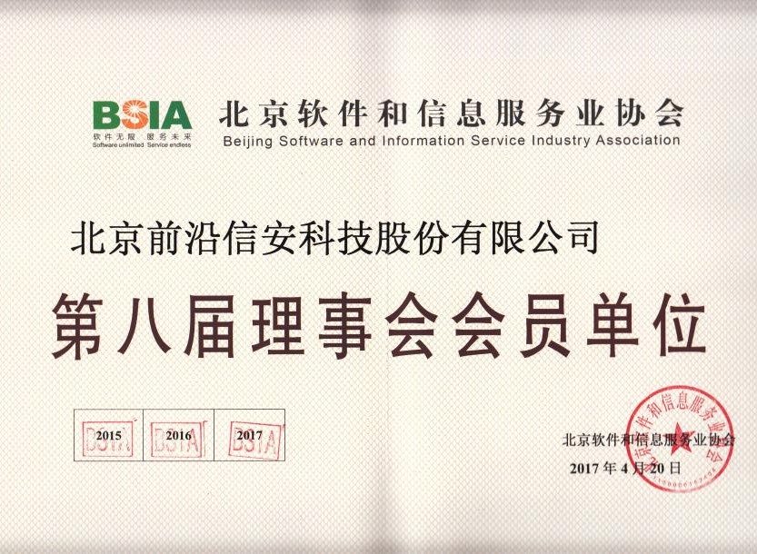 北京软件和信息服务业协会”软件产品证书 “--前沿数据防泄漏系统
