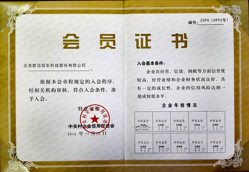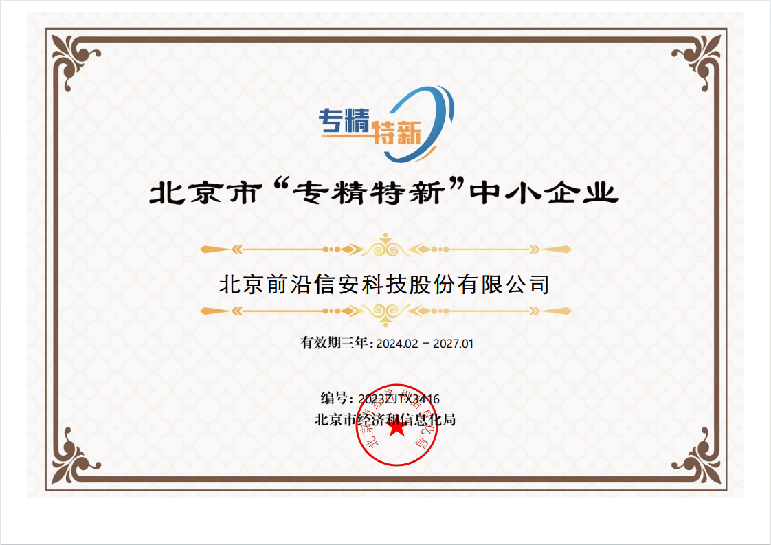 中国人民解放军信息安全评测认证中心“军用信息安全产品认证证书”